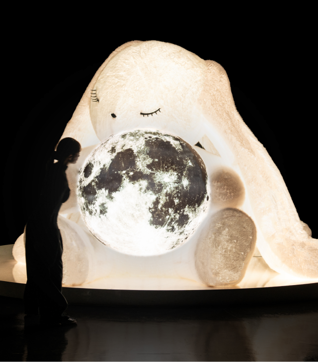 '달아 달아, 밝은 달아'그 부름이 만들어낸 이름, 달토끼 ‘dara’.dara는 자연의 모든 이야기를 듣는 듯눈을 감고 긴 귀로 우리를 맞이합니다.우리의 이야기를 가장 먼저 들어주는 달토끼를아르떼뮤지엄에서 만나보세요.
